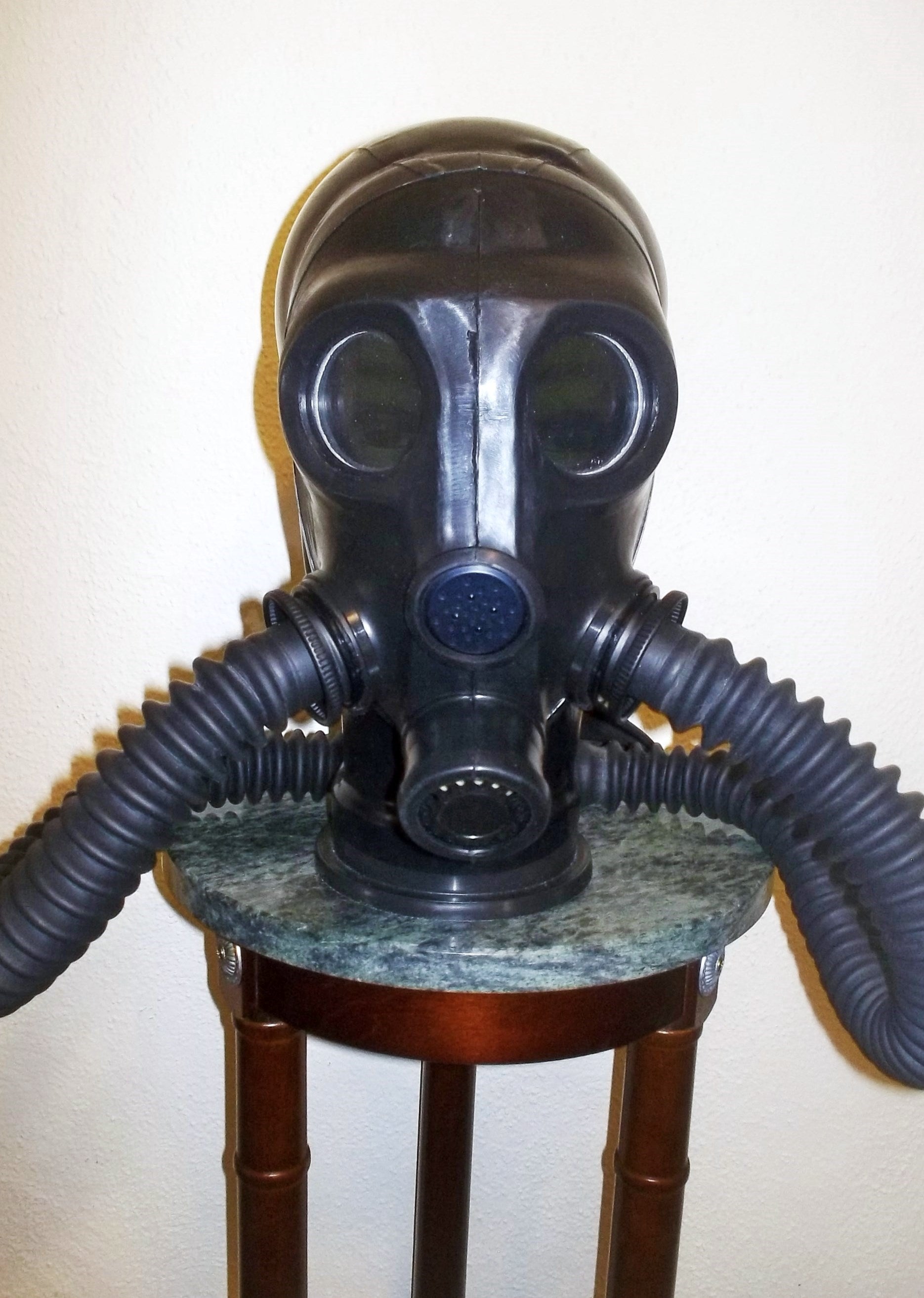 CUSTOM Fetish LATEX Hooded GAS MASK with Dark Lenses, Twin Hoses and Rebreather Bag~Femdom HEAVY RUBBER by FANTOMAS & Co.