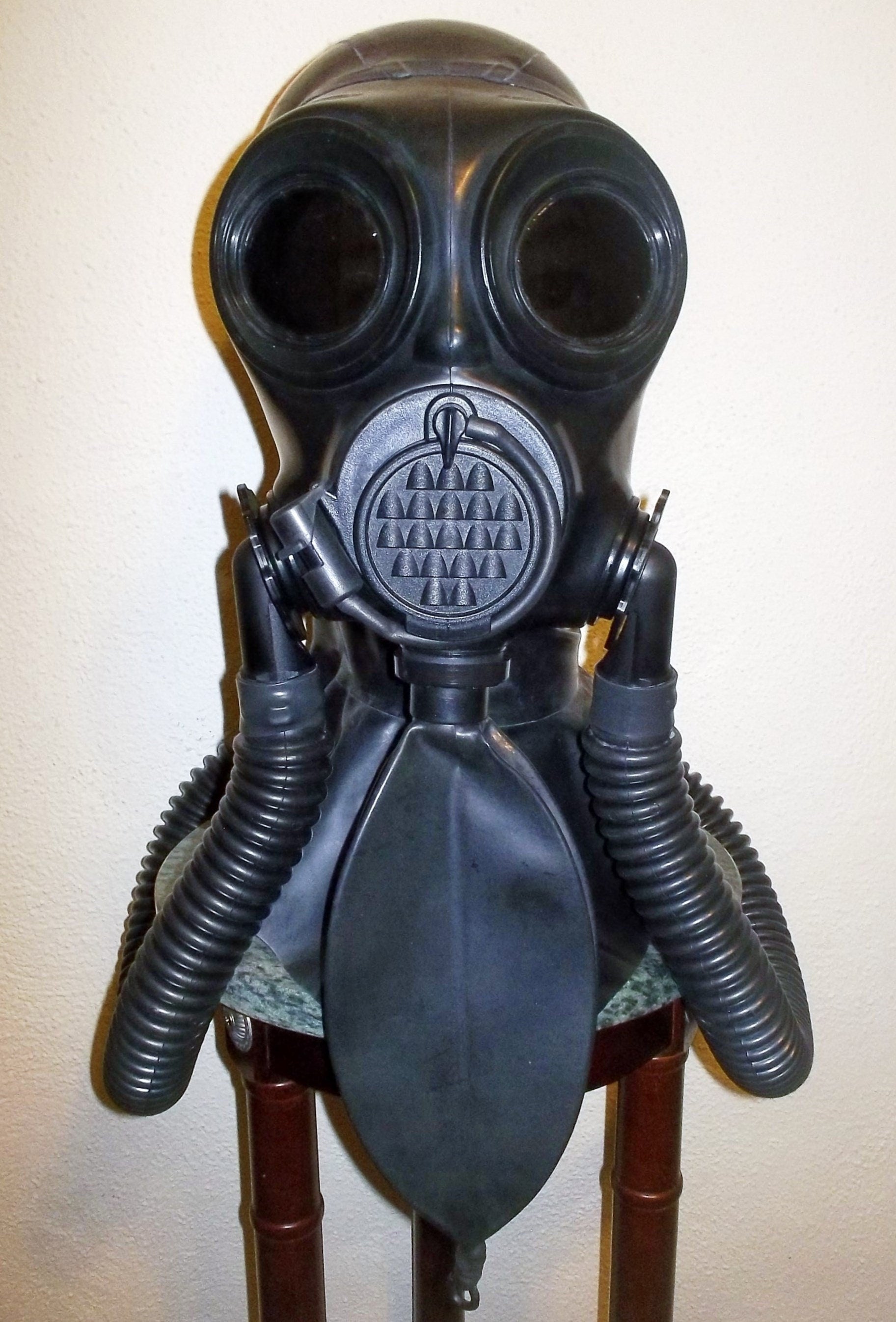 REBREATHER GAS MASK with DARK TINTED LENSES and Detachable TWIN HOSES.