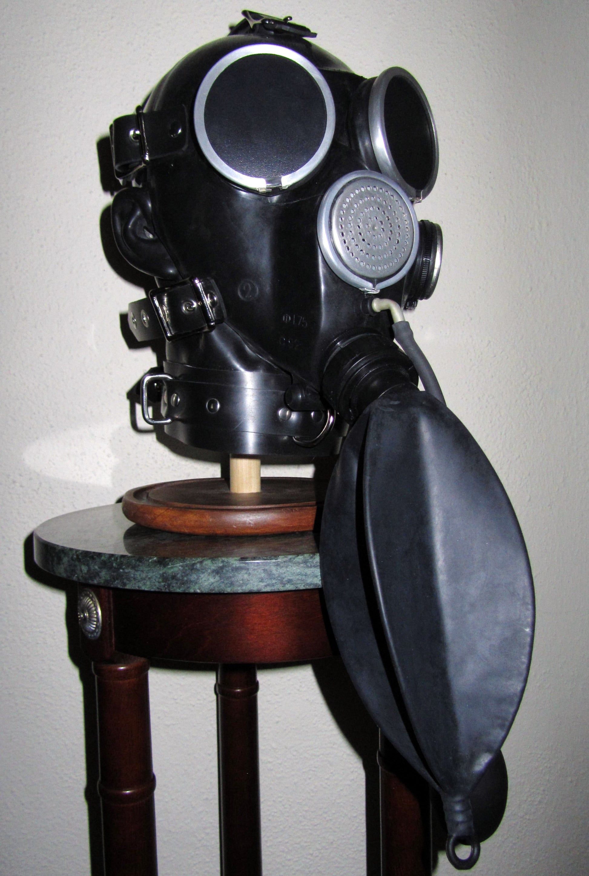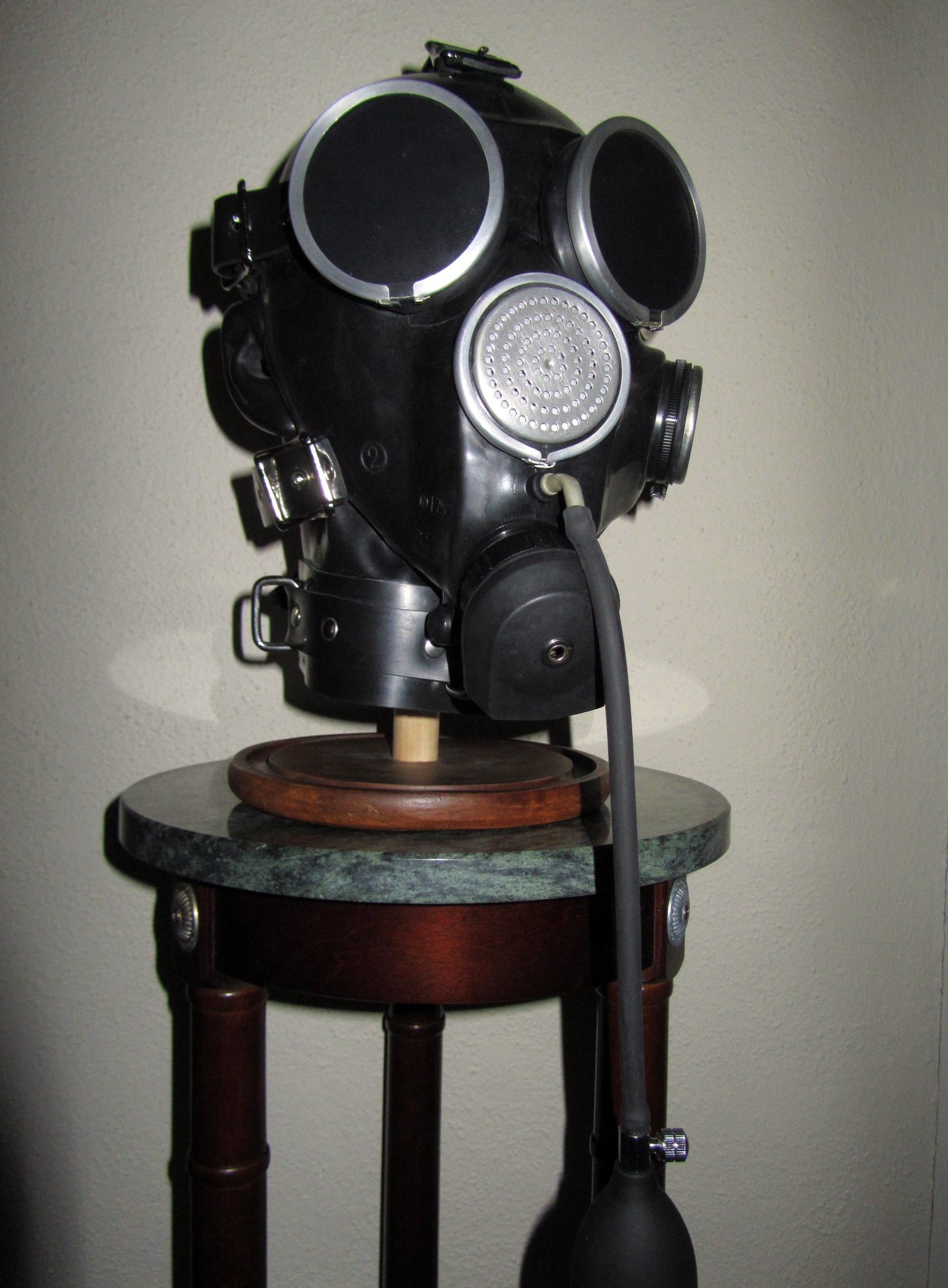 - GAS MASK FACEPIECE IS EQUIPPED WITH DETACHABLE INFLATABLE MOUTH GAG WITH HAND PUMP. GAG IS APPROX. 2.5 INCHES LONG AND 1.5" WIDE, INFLATES WELL.